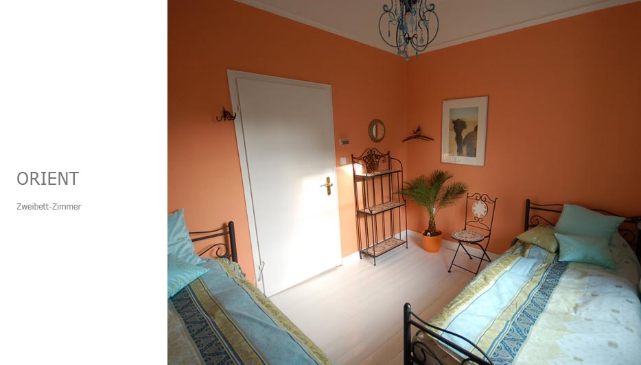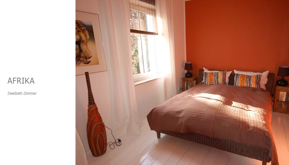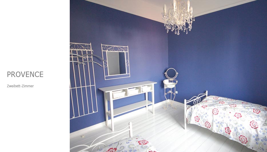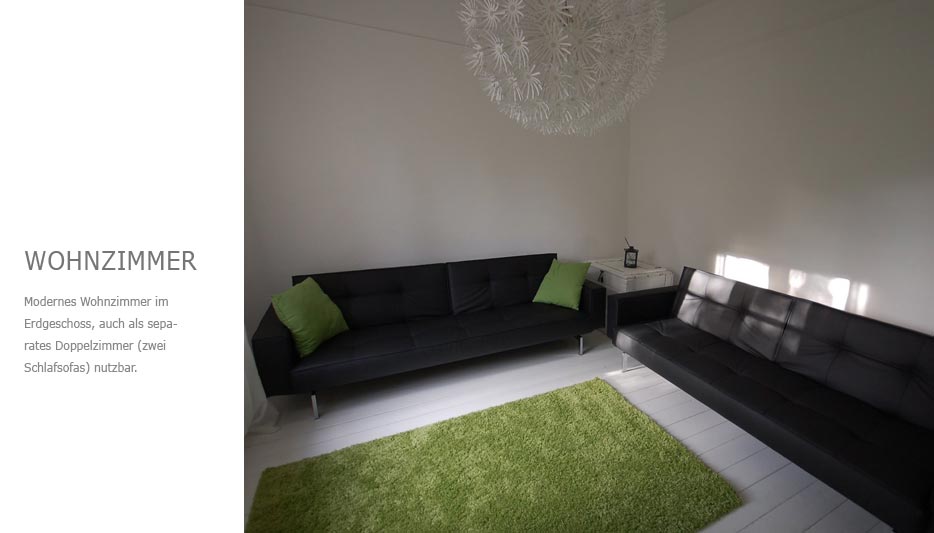 5 individuell gestaltete Doppelzimmer im 1. Ober- und Dachgeschoss Wohn-/Schlafzimmer für zwei weitere Personen im Erdgeschoss |